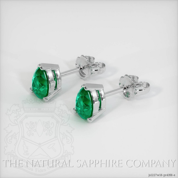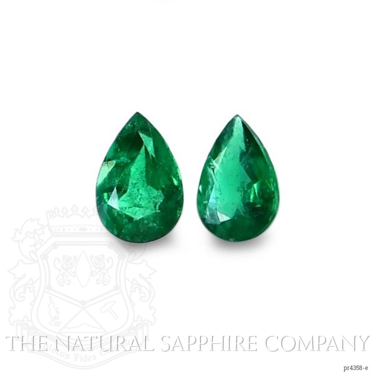 The earrings feature a beautiful, transparent pair of emeralds that are 0.80 total carat weight. They are pear shape green emeralds, with the dimensions of 6.13 x 4.16 x 2.95 mm and are mixed brilliant cut, have a clarity grade of very slightly included (evaluated at eye level), intense color saturation, and an excellent polish. The origin of this pair of emeralds is Zambia.