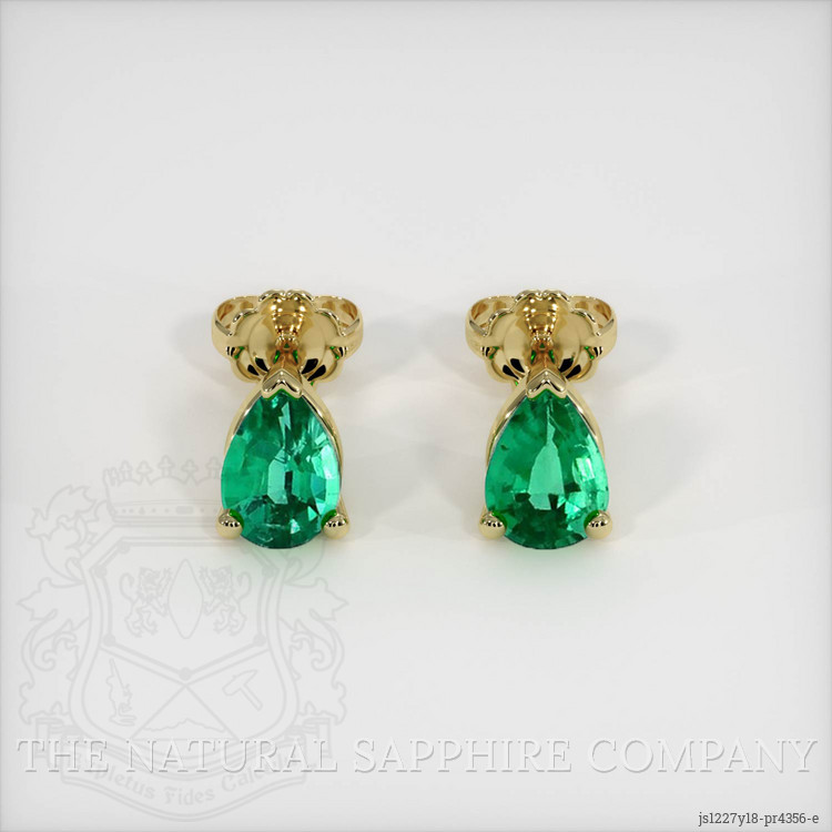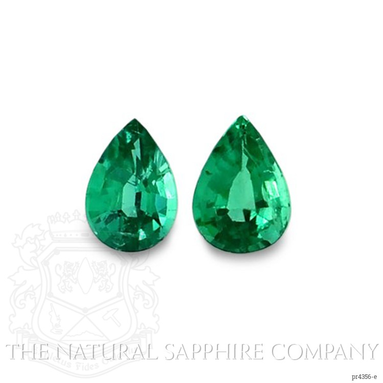 The earrings feature a beautiful, transparent pair of emeralds that are 0.70 total carat weight. They are pear shape green emeralds, with the dimensions of 6.00 x 4.20 x 2.90 mm and are mixed brilliant cut, have a clarity grade of very slightly included (evaluated at eye level), intense color saturation, and an excellent polish. The origin of this pair of emeralds is Zambia.