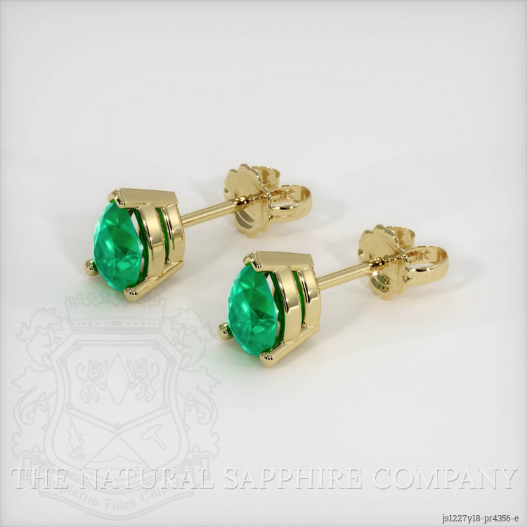 Studs Emerald Earring 0.70 Ct.Tw.Total Carat Weight, 18K Yellow Gold