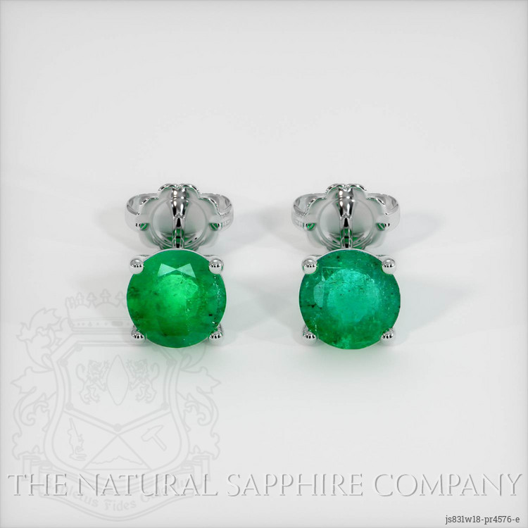 Studs Emerald Earring 2.27 Ct.Tw.Total Carat Weight, 18K White Gold