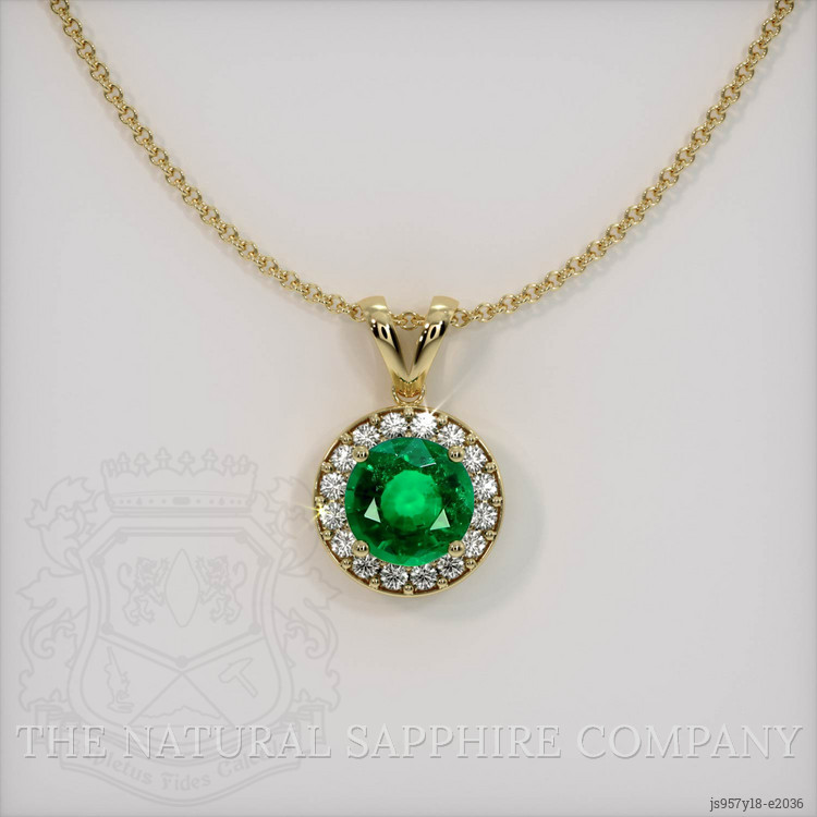 Pave Emerald Pendant 0.85 Ct., 18K Yellow Gold