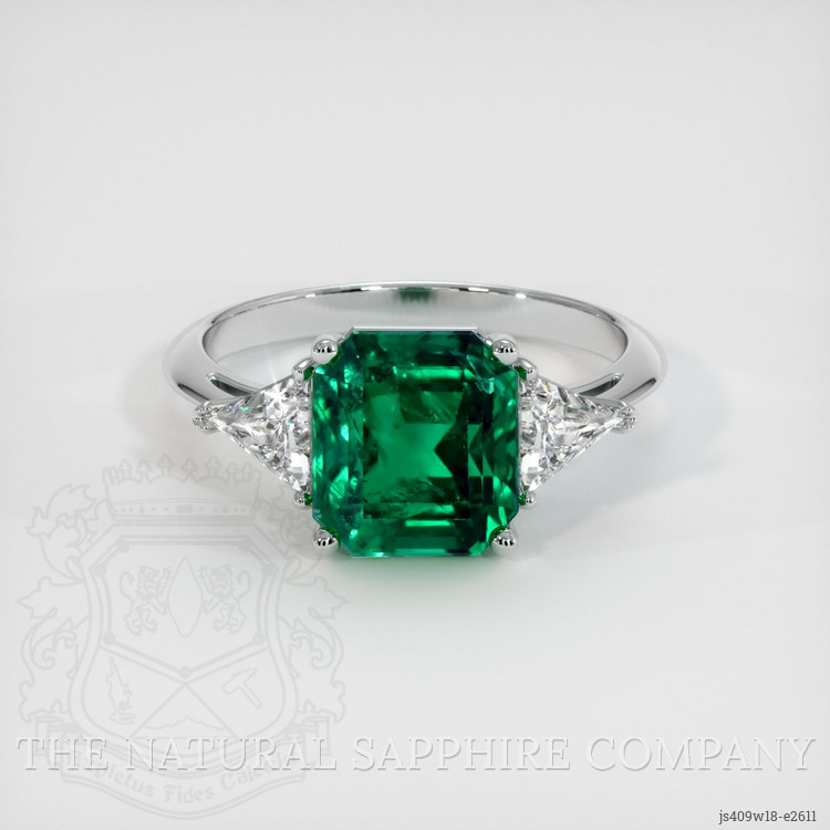 Three Stone Emerald Ring 2.79 Ct., 18K White Gold
