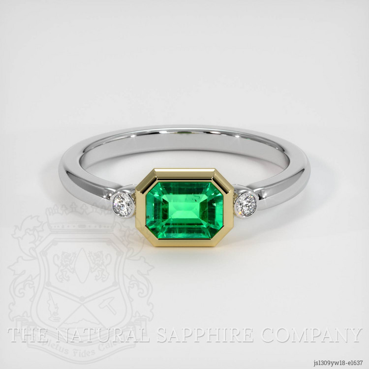 Three Stone Emerald Ring 0.59 Ct., 18K Yellow & White
