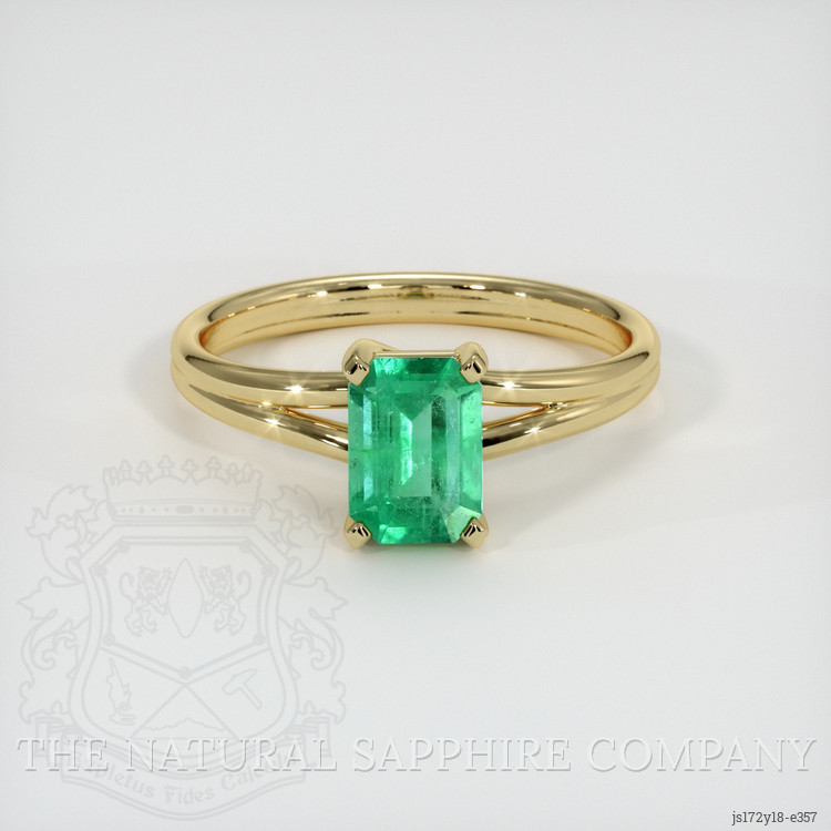 Solitaire Emerald Ring 0.88 Ct., 18K Yellow Gold
