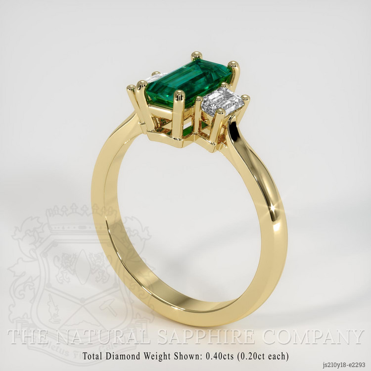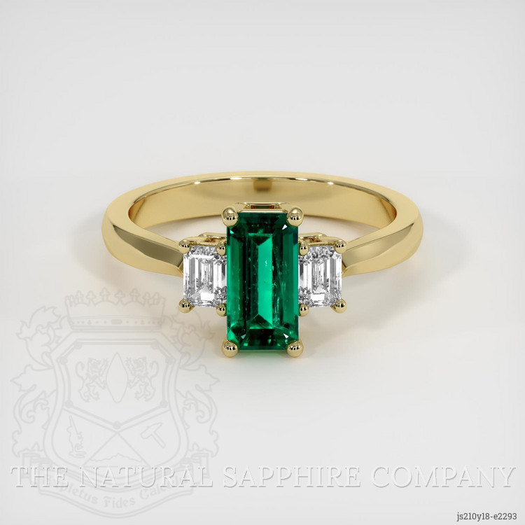 Three Stone Emerald Ring 0.88 Ct., 18K Yellow Gold