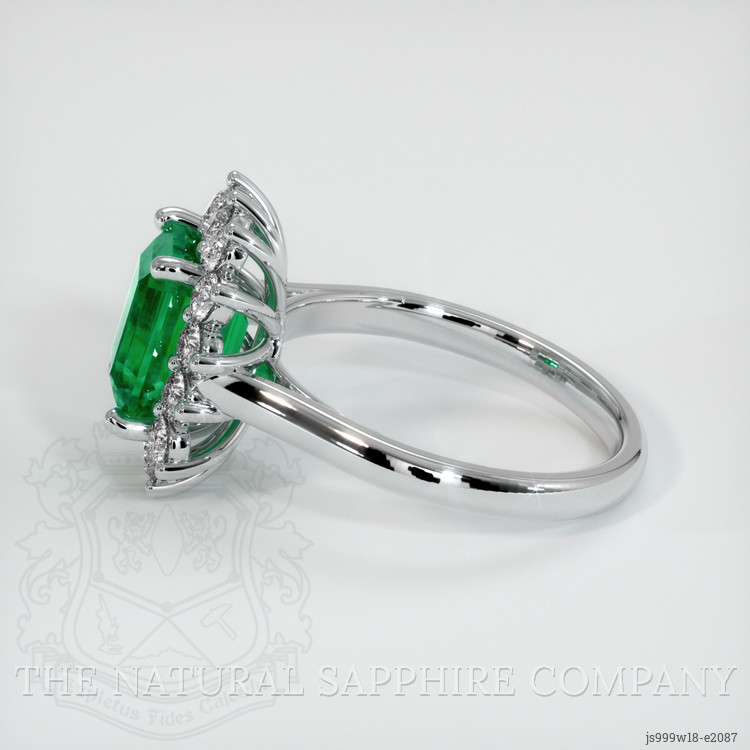 The ring features a beautiful, transparent C.Dunaigre certified 2.37 carat emerald cut shape green emerald with the dimensions of 8.40 x 6.80 x 5.50 mm and a emerald cut. It has a clarity grade of very slightly included (evaluated at eye level), intense color saturation, and an excellent polish. The origin of this emerald is Afghanistan.
