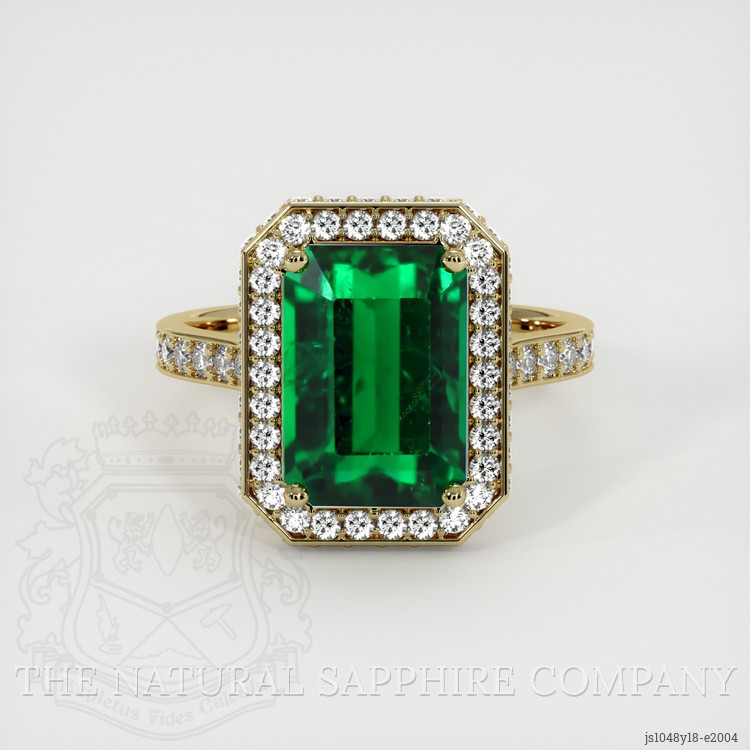 Pave Emerald Ring 4.65 Ct., 18K Yellow Gold
