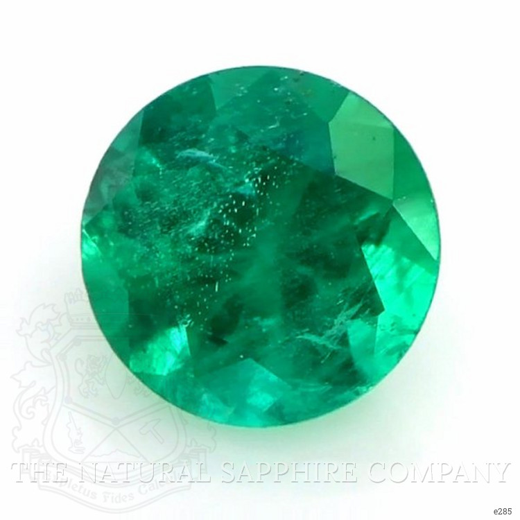 One beautiful transparent 0.37 carat round shape green emerald with dimensions of 5.05 x 4.98 x 3.00 mm. It has a mixed brilliant cut, and a clarity grade of very slightly included (evaluated at eye level), intense color intensity, and an excellent polish. The origin of this emerald is Zambia.