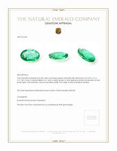 The beautiful, transparent 0.38 carat oval green emerald with the dimensions of 6.09 x 4.12 x 2.21 mm and is mixed brilliant cut, has a clarity grade of very slightly included (graded at eye level), light color intensity, and an excellent polish. The origin of this emerald is Zambia.