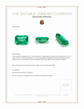 The beautiful, transparent 0.50 carat emerald cut green emerald with the dimensions of 5.96 x 3.98 x 2.96 mm and is emerald cut , has a clarity grade of slightly included (graded at eye level), intense color intensity, and an excellent polish. The origin of this emerald is Zambia.