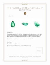 The beautiful, transparent 0.54 carat pear green emerald with the dimensions of 7.01 x 4.82 x 3.09 mm and is brilliant cut, has a clarity grade of very slightly included (graded at eye level), medium color intensity, and an excellent polish. The origin of this emerald is Zambia.