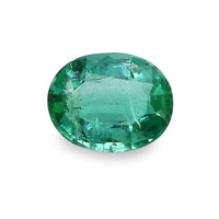 The beautiful, transparent 0.59 carat oval green emerald with the dimensions of 6.14 x 5.08 x 3.11 mm and is brilliant cut, has a clarity grade of included (graded at eye level), light color intensity, and an excellent polish. The origin of this emerald is Zambia.