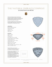 One beautiful transparent 0.69 carat trillion shape green emerald with dimensions of 6.05 x 6.26 x 3.81 mm. It has a mixed brilliant cut, and a clarity grade of very slightly included (evaluated at eye level), intense color intensity, and an excellent polish. The origin of this emerald is Zambia.