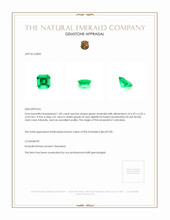 One beautiful transparent 1.00 carat asscher shape green emerald with dimensions of 6.35 x 6.32 x 4.24 mm. It has a step cut, and a clarity grade of very slightly included (evaluated at eye level), vivid color intensity, and an excellent polish. The origin of this emerald is Colombia.