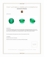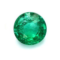 One beautiful transparent 1.08 carat round shape green emerald with dimensions of 6.22 x 6.09 x 4.71 mm. It has a mixed brilliant cut, and a clarity grade of very slightly included (evaluated at eye level), intense color intensity, and an excellent polish. The origin of this emerald is Zambia.