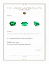 The beautiful, transparent 1.26 carat oval green emerald with the dimensions of 8.06 x 5.93 x 4.53 mm and is mixed brilliant cut, has a clarity grade of slightly included (graded at eye level), intense color intensity, and an excellent polish. The origin of this emerald is Zambia.