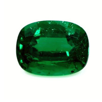 One beautiful transparent 1.28 carat cushion shape green emerald with dimensions of 7.87 x 5.72 x 4.29 mm. It has a mixed brilliant cut, and a clarity grade of very slightly included (evaluated at eye level), vivid color intensity, and an excellent polish. The origin of this emerald is Zambia.