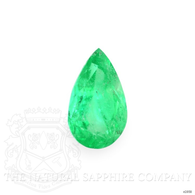 One beautiful transparent 1.35 carat pear shape green emerald with dimensions of 9.72 x 5.77 x 4.36 mm. It has a mixed brilliant cut, and a clarity grade of very slightly included (evaluated at eye level), intense color intensity, and an excellent polish. The origin of this emerald is Colombia.