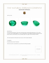 One beautiful transparent 1.08 carat oval shape green emerald with dimensions of 7.33 x 5.83 x 3.73 mm. It has a mixed brilliant cut, and a clarity grade of very slightly included (evaluated at eye level), intense color intensity, and an excellent polish. The origin of this emerald is Zambia.