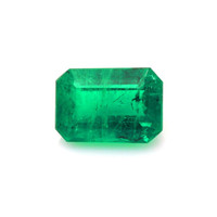 One beautiful transparent 1.81 carat emerald cut shape green emerald with dimensions of 8.88 x 6.25 x 4.45 mm. It has a step cut, and a clarity grade of slightly included (evaluated at eye level), vivid color intensity, and an excellent polish. The origin of this emerald is Colombia.