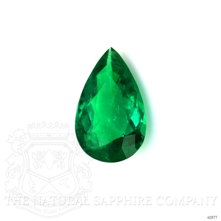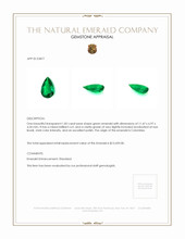 One beautiful transparent 1.82 carat pear shape green emerald with dimensions of 11.47 x 6.97 x 4.34 mm. It has a mixed brilliant cut, and a clarity grade of very slightly included (evaluated at eye level), vivid color intensity, and an excellent polish. The origin of this emerald is Colombia.