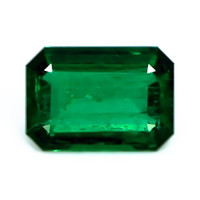 One beautiful transparent 2.56 carat emerald cut shape green emerald with dimensions of 10.85 x 7.66 x 4.06 mm. It has a step cut, and a clarity grade of very slightly included (evaluated at eye level), vivid color intensity, and an excellent polish. The origin of this emerald is Zambia.