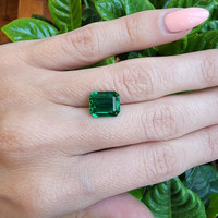 One beautiful transparent 2.61 carat emerald cut shape green emerald with dimensions of 9.71 x 8.14 x 4.44 mm. It has a emerald cut, and a clarity grade of very very slightly included (evaluated at eye level), vivid color intensity, and an excellent polish. The origin of this emerald is Zambia.