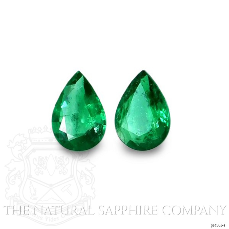 The beautiful, transparent pair of emeralds are 0.54 carats and 0.58 carats respectively. They are pear green emeralds, with the dimensions of 7.10 x 5.00 x 2.70 mm and 7.10 x 5.10 x 2.70 mm and are mixed brilliant cut, have a clarity grade of slightly included (graded at eye level), intense color intensity, and an excellent polish. The origin of this pair of emeralds is Zambia.